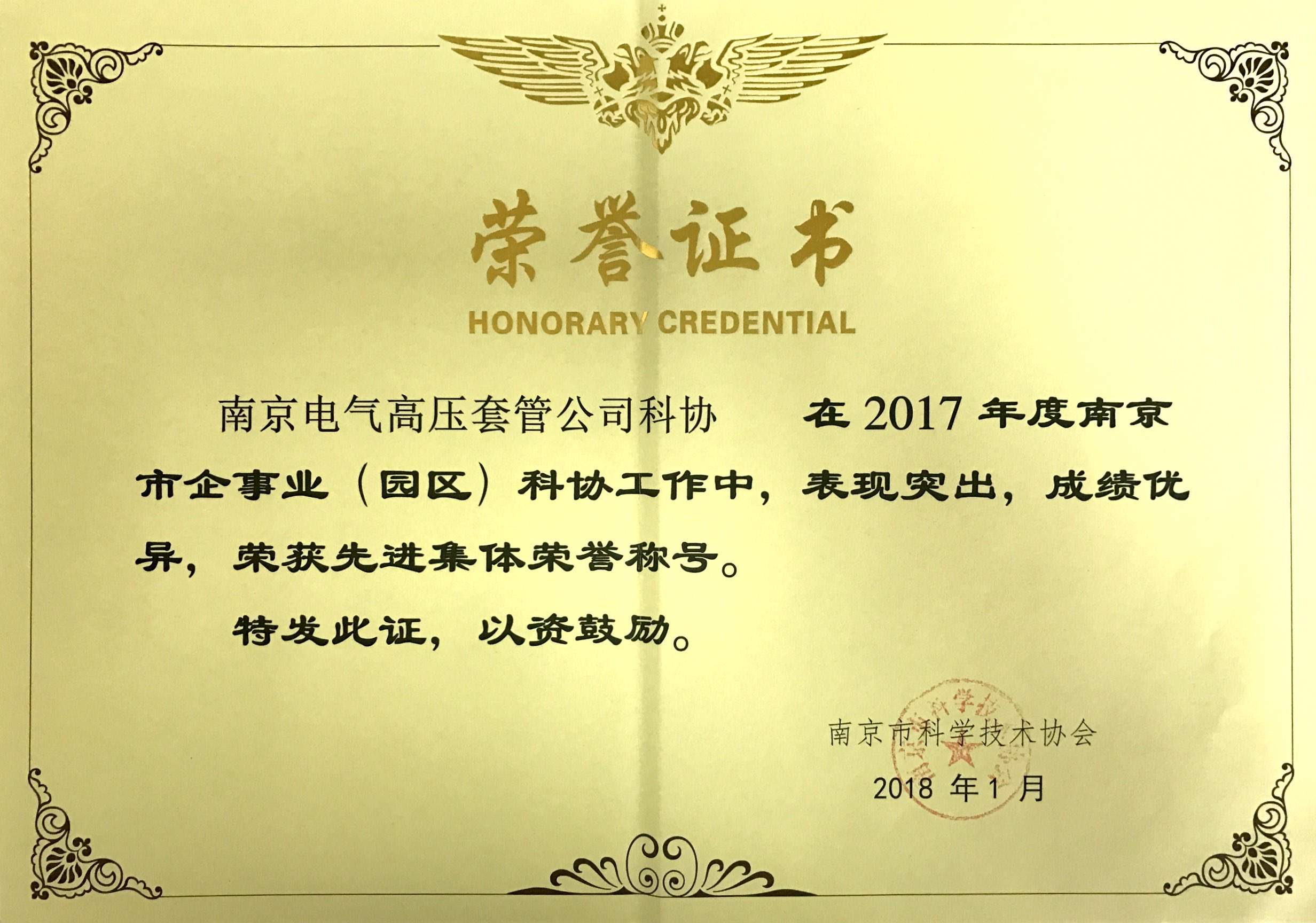 南京電氣套管公司獲南京市科協(xié)先進(jìn)集體稱號