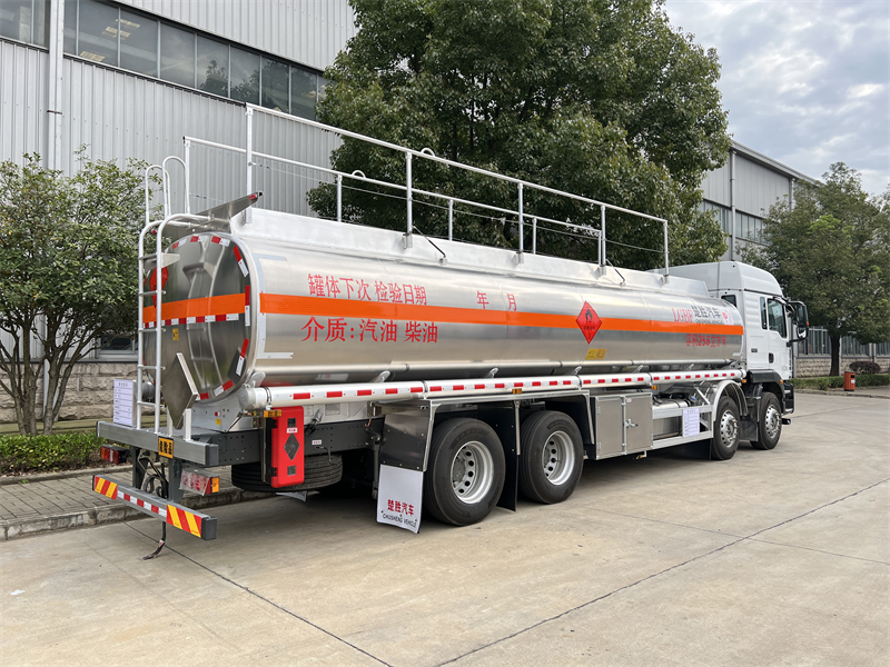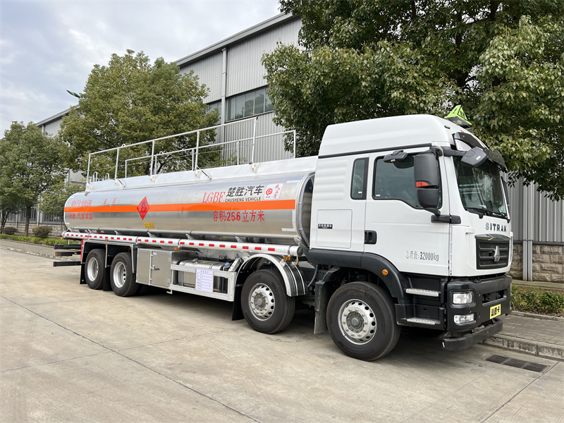 上裝配置:罐體容積按公告尺寸制作,公告容積25.6方,上戶噸位20.6.噸, 帶80-80專用油泵(帶溢流閥),(泵進(jìn)泵出裝在正駕駛一側(cè),)全套歐標(biāo)(兩個(gè)歐標(biāo)罐口,,一個(gè)海底閥,一個(gè)防溢流探桿及插座,一個(gè)廢氣回收,一個(gè)下裝油安裝在正副駕駛一側(cè),)。配一個(gè)防火帽,兩根于罐體等長(zhǎng)的輸油管,兩個(gè)滅火器,其余廠內(nèi)標(biāo)配,罐體后尾部一個(gè)工具箱,保證罐體及整車尺寸按公告制作。油漆:不做漆,帖3M反光貼,反光帶,三個(gè)“易燃液體”標(biāo),安全告示牌。